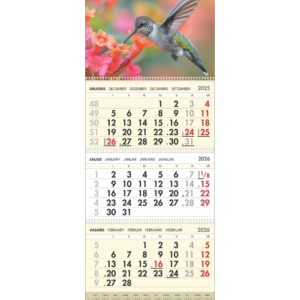 Trijų dalių sieninis kalendorius KOLIBRIS 2026