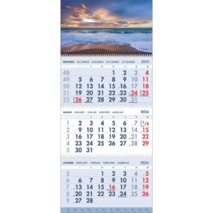 Trijų dalių sieninis kalendorius MERIDIANAS 2026