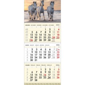 Trijų dalių sieninis kalendorius PIEVOS ZIRGAI 2026