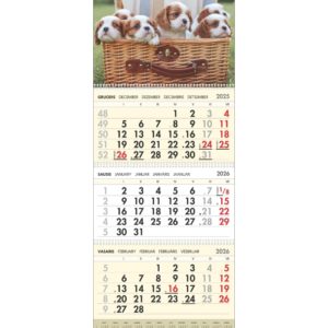 Trijų dalių sieninis kalendorius ŠUNIUKAI 2026