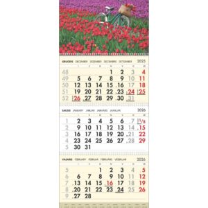 Trijų dalių sieninis kalendorius TULPĖS 2026